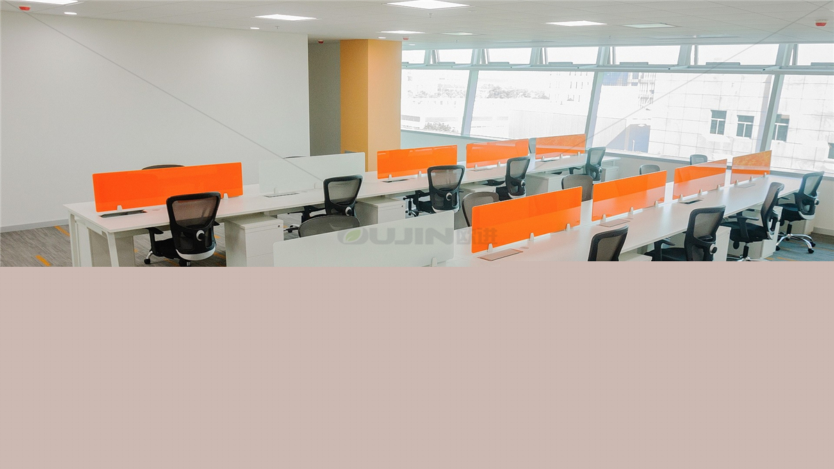 開(kāi)放式的辦公空間沒(méi)有采用生硬的隔間墻,而是順應(yīng)功能自然劃分,白色的辦公桌再配以橙色的桌面屏風(fēng)檔板使整個(gè)辦公空間洋溢著自由靈動(dòng)、簡(jiǎn)約優(yōu)雅的氣息。開(kāi)闊的工作區(qū)內(nèi)設(shè)有近30個(gè)座位。開(kāi)放式與專(zhuān)享辦公空間,無(wú)論個(gè)人和公司,都能在不同的環(huán)境中尋找到適合自己的交流方式。除開(kāi)放工作區(qū)之外,還有10人左右小型辦公團(tuán)隊(duì)的空間,此層沒(méi)有有前廳接待區(qū),主要為前廳背景墻加等候休閑區(qū),雖無(wú)前臺(tái)區(qū)域但整體的風(fēng)格也是延續(xù)了整體理念及效果。另外為15人左右中型及25人左右大型辦公團(tuán)隊(duì)層。每種布局分布除了辦公功能外,都會(huì)有舒適的共享交流休閑平臺(tái)。
