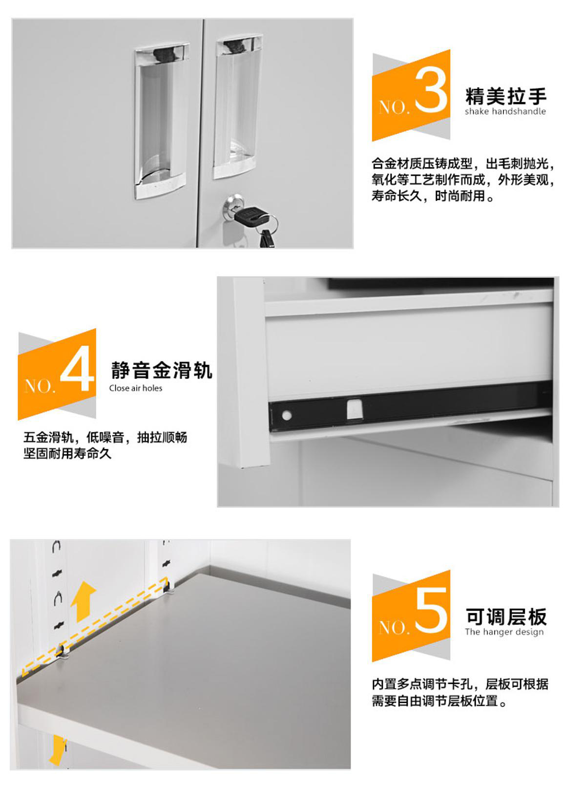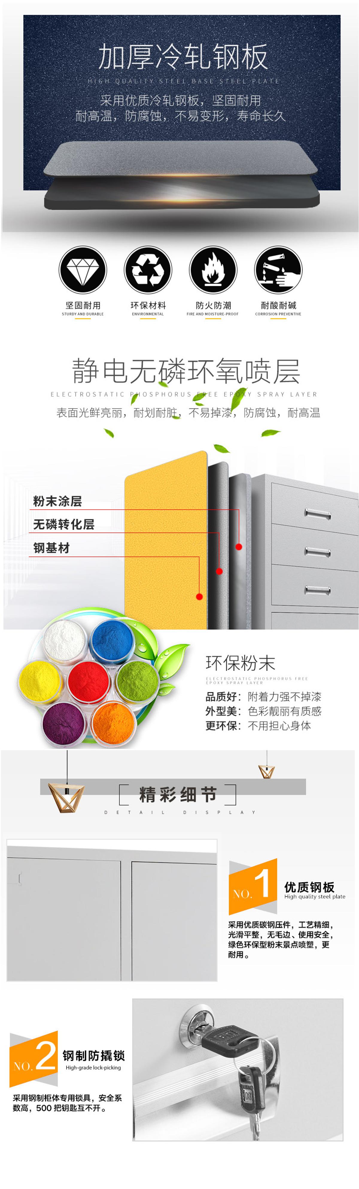 鋼制文件柜,文件柜防火、防腐、耐磨,五金件結(jié)實(shí)耐用,而且便于文件管理,提高工作效率,同時(shí),讓辦公空間更加整潔